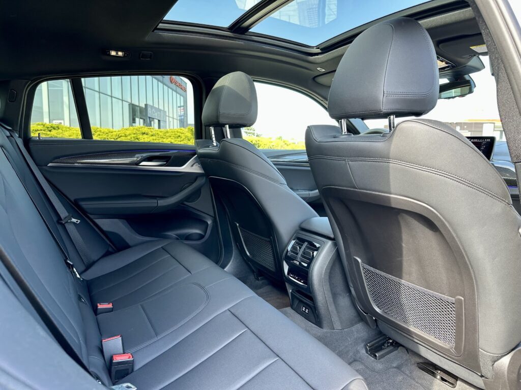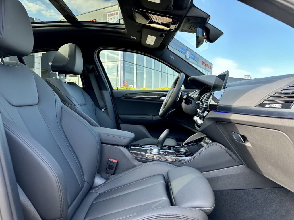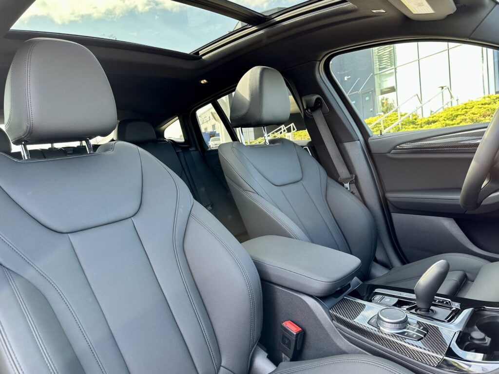 Rev up your next car rental with the thrilling BMW X4 M40i! Its eye-catching Dark Grey metallic paint and black leather interior demand attention. Enjoy luxurious features like adaptive cruise control, a panoramic roof, and 4-zone climate control. The 3-liter turbo petrol engine powers all four wheels with 281 kW, ensuring an electrifying drive. Stand out from the crowd with the M-Sport pack and black 19-inch wheels.